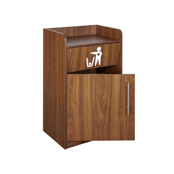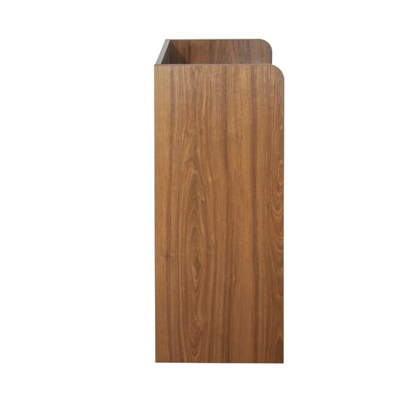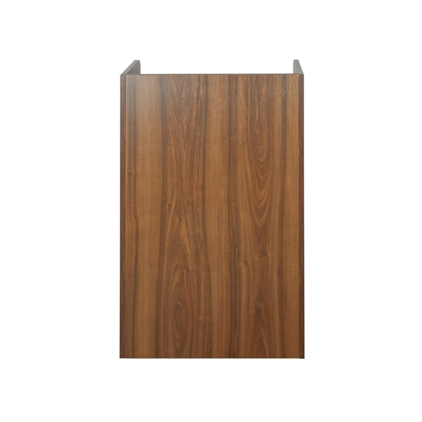 Dimensions 1000(H) x 600(W) x 400(D)mm — Material Walnut — Colour Walnut — Flat packed for self-assembly — Adjustable feet. — Heavy duty 18mm materials. — High impact edging. — Wipe clean surfaces. — Attractive Walnut effect finish. — Radius corners — Waste bin included. — Soft-close door hinges.